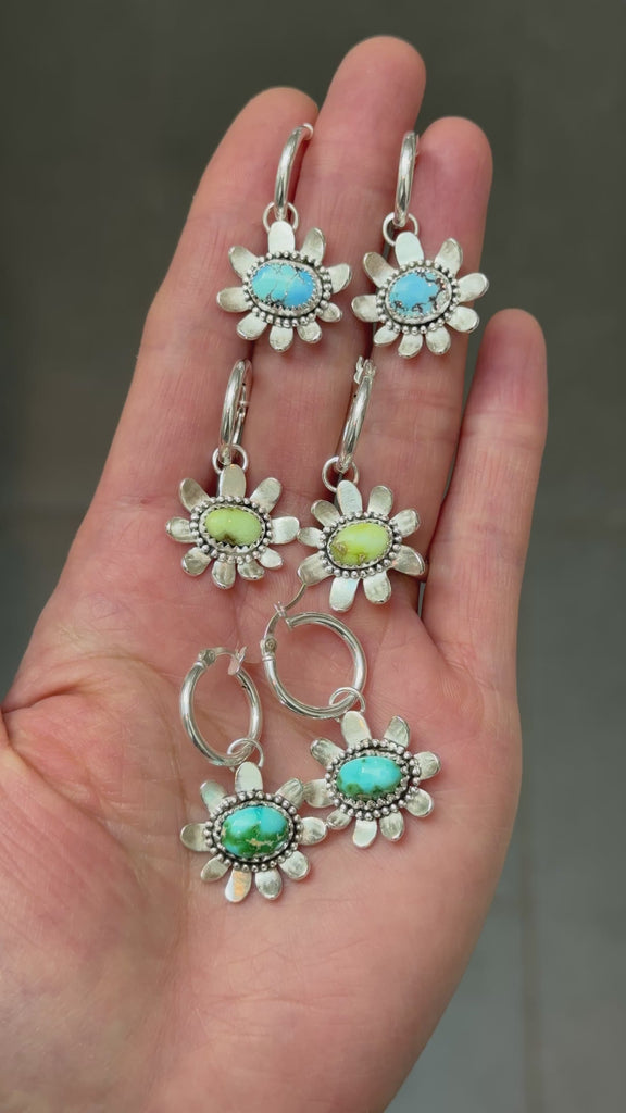 Artisanlab Jewelry Turquoise Wild Flower Hoop Earrings - Ready to ship